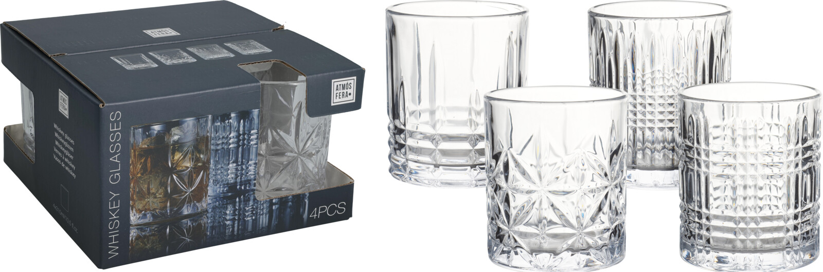 Excellent Houseware Set 4 pahare whiskey Excellent Houseware, sticla, 8.2x9.2 cm, 310 ml, transparent