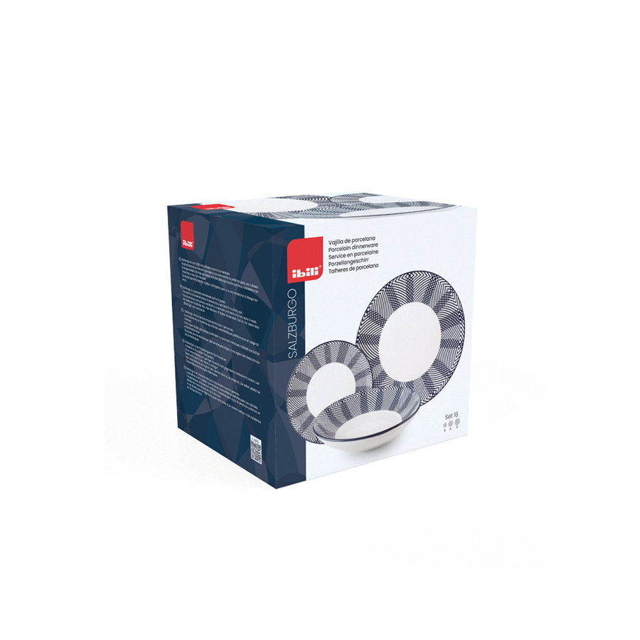 • Setul de vesela Salzburg din 18 piese este format din 6 farfurii de supa - 20.4 cm, 6 farfurii plate - 27 cm si 6 farfurii de desert - 19.1 cm.